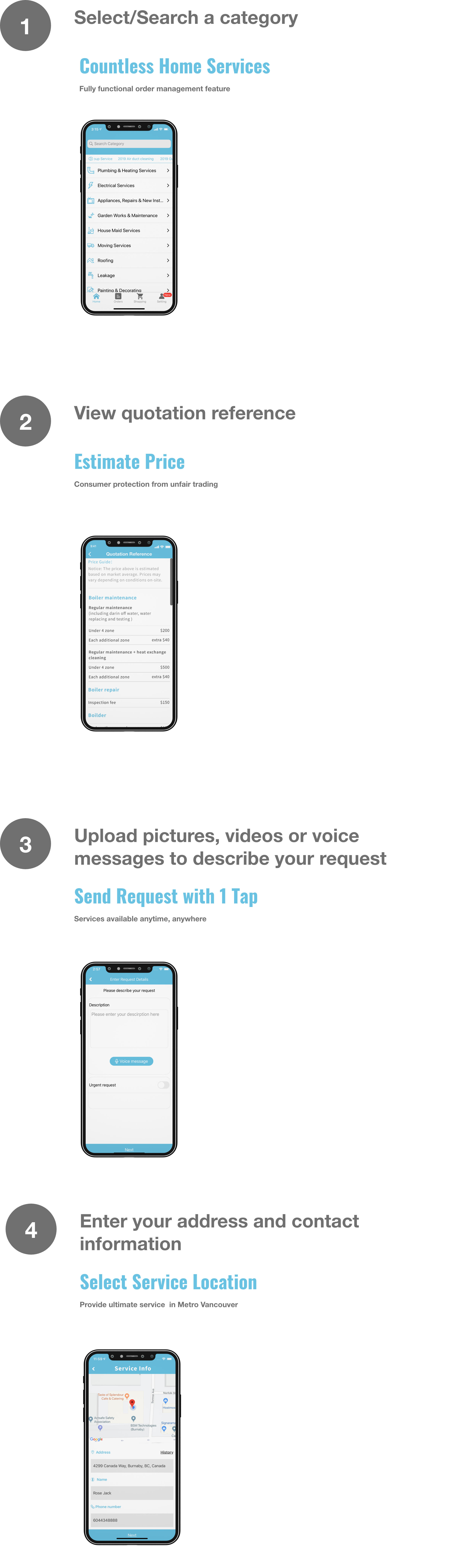 HelloButler App supports direct message, voice message, photo and video to facilitate your communication with our technicians.